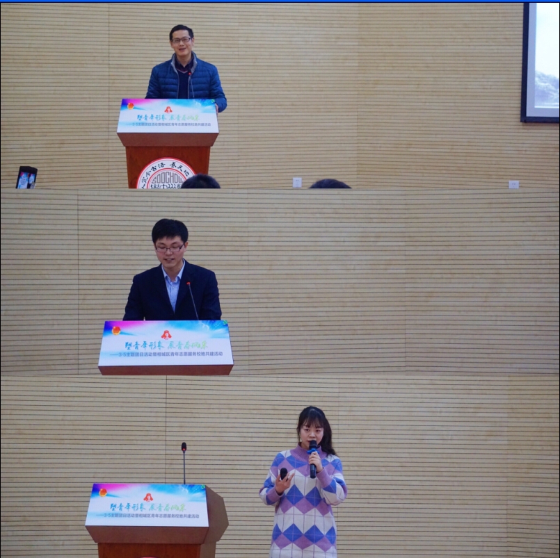 下午14:00,青年志愿服務(wù)校地共建活動(dòng)在校區(qū)交通大樓二樓報(bào)告廳舉行。蘇州大學(xué)軌道交通學(xué)院黨委副書記、副院長(zhǎng)黃曉輝,相城區(qū)團(tuán)委副書記張亥秋,相城區(qū)科技協(xié)會(huì)副主席錢珺,相城區(qū)城市管理局副局長(zhǎng)葛金男,蘇大陽(yáng)澄湖校區(qū)各學(xué)院、相城區(qū)部分機(jī)關(guān)、學(xué)校和企事業(yè)單位的志愿者們參加了此次活動(dòng)。