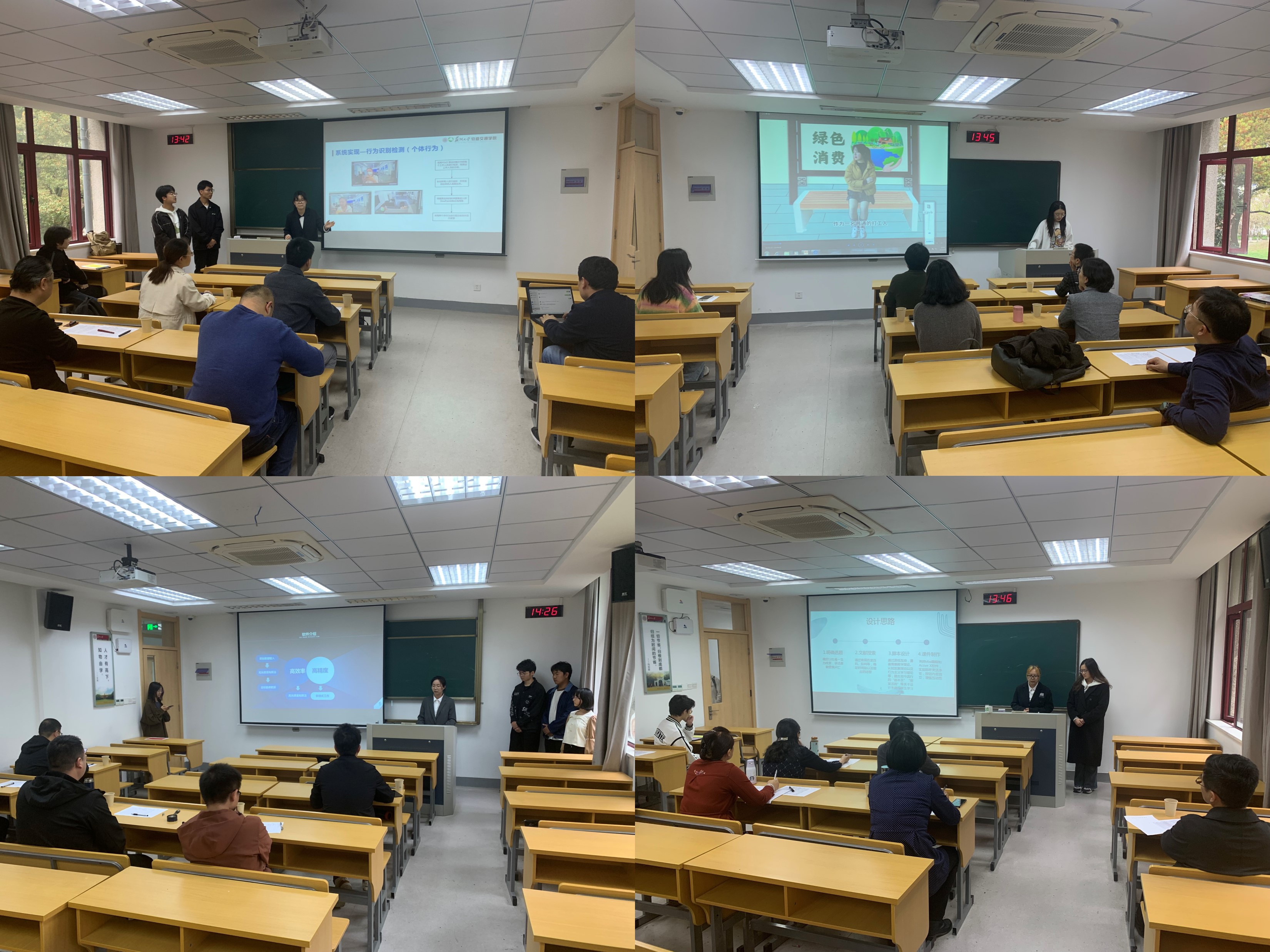 本輪校賽組織嚴密,程序嚴謹,70個項目分成4組并行參賽,每個項目進行6分鐘的匯報展示和2分鐘的互動答辯,由各學院(部)推薦的20名專家評委評分。經(jīng)過4個小時的角逐,共有45個項目入圍省賽。