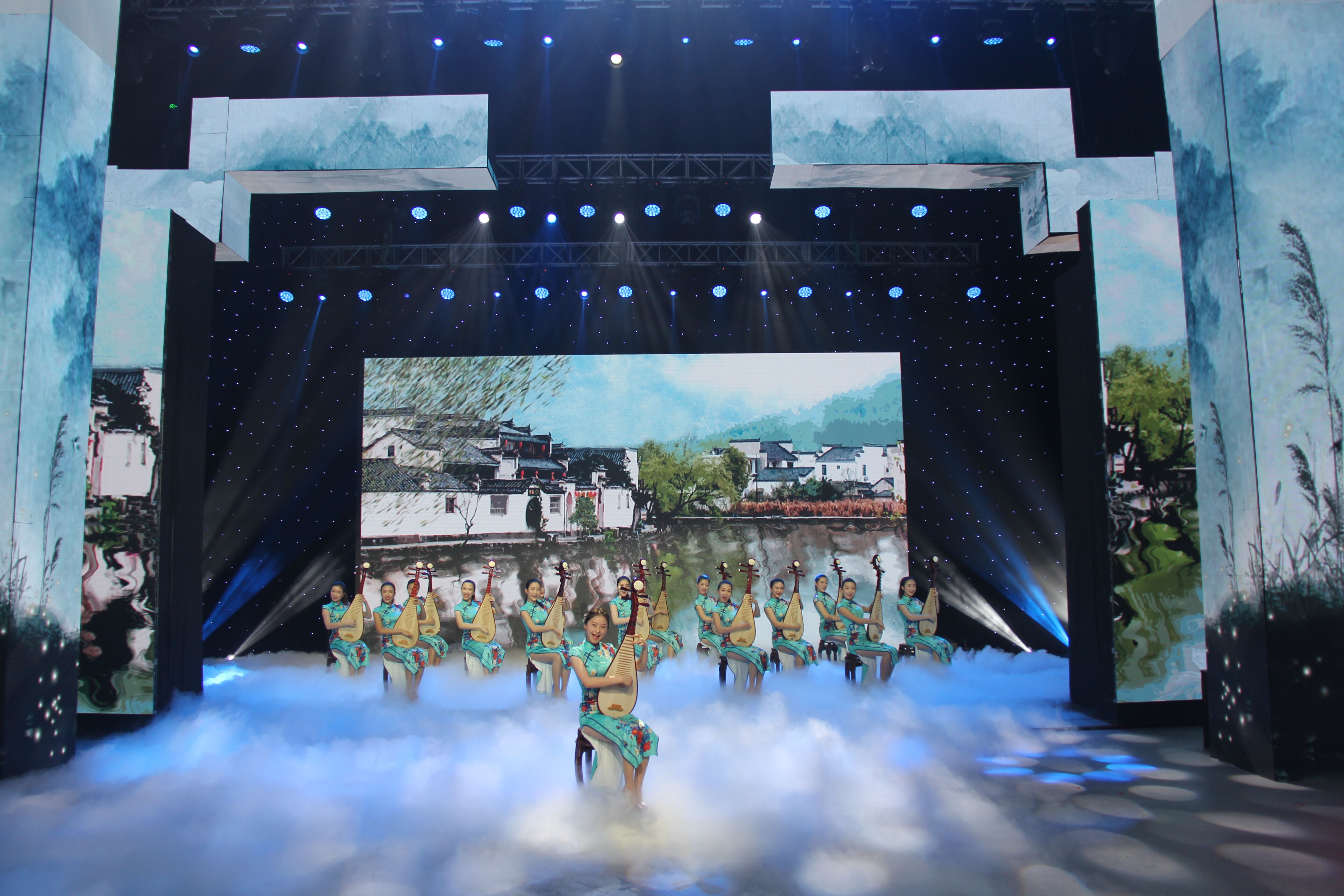 舞臺上,15位姑娘裙裾搖曳、曼妙生姿,她們一對對顧盼生輝的眼眸,一雙雙纖纖的巧手輕撫琵琶, 配以輕清柔緩的吳儂軟語 ,將江南小娘魚的柔美風韻發揮到了極致。