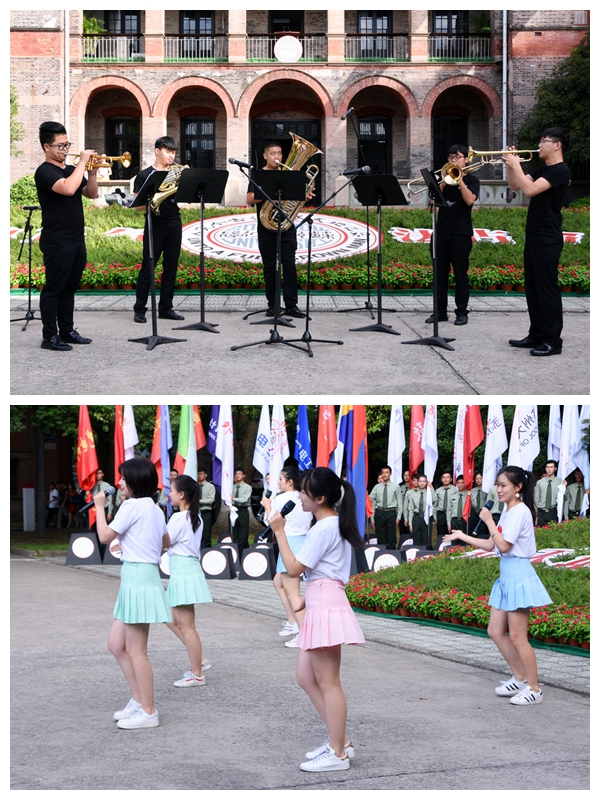 典禮開始前,音樂學(xué)院銅管樂團(tuán)和學(xué)長學(xué)姐們?yōu)?/span>2018級新生帶來了精彩的暖場表演。一時間,歡呼聲、掌聲在中西合璧的百年校園上空陣陣回響。
