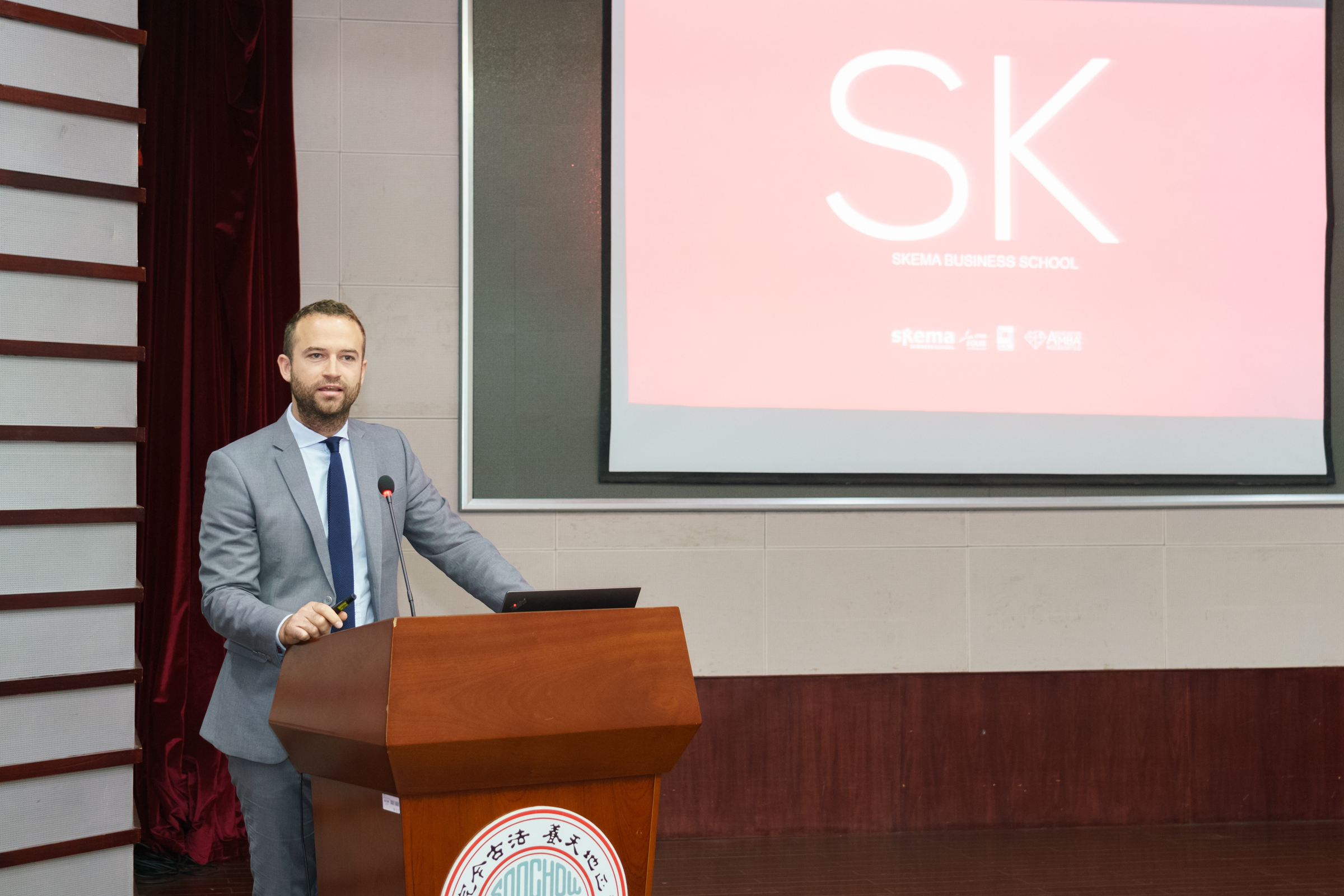 SKEMA商學院中國校區校長杜睿天與在場嘉賓分享了該校國際化戰略及經驗。SKEMA是一所為高等教育國際化而生的商學院,SKEMA先后在法國、中國、美國、巴西開設6大校區。該校國際化戰略在全球備受好評,被認為是高等教育國際化的模范院校之一。蘇州大學和SKEMA商學院合作歷史悠久,合作成果斐然。截至2018年,已有約2000名SKEMA中國校區的國際學生在蘇州大學學習漢語和中國文化,45名蘇大學生赴SKEMA攻讀碩士課程。