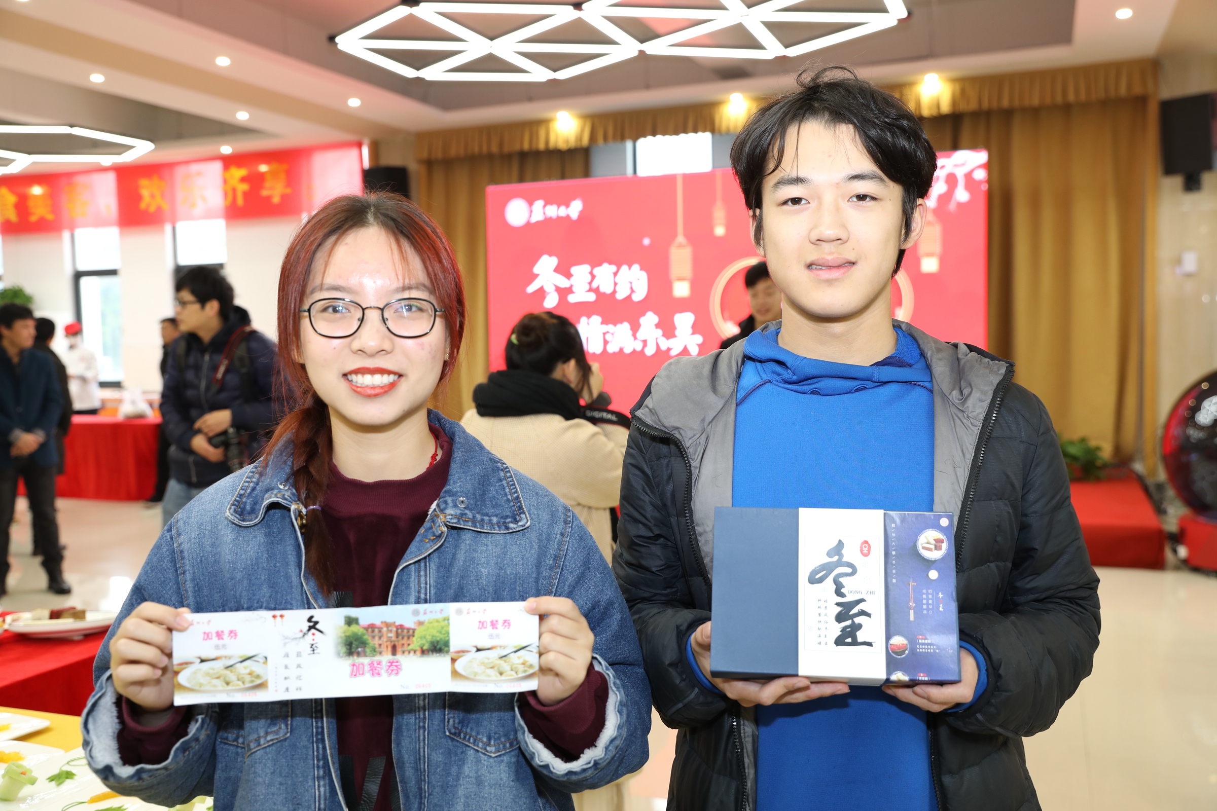 除了品嘗冬至美食,學校還開展了一系列民俗文化活動。研究生會舉辦了"情暖冬至,樂享文化"活動。歲月沉淀的木版年畫,泥味匠心的黏土藝術,妙趣橫生的年味對聯,還有興味盎然的燈謎游戲——四個不同的文娛板塊培養了大家對傳統文化的認同感和自豪感。首屆“敬文·冬至節”由書畫名家進校園、敬文精神大家談、冬至游藝會、敬文晚會四大系列十二項活動組成。江涌書記、蔣星紅副校長等領導與書院師生歡聚一堂,開展詩畫敬文、家在書院等豐富多彩的活動,更好地發揮了中國傳統節日文化、書院文化、家文化的現代教育功能。江涌書記、蔣星紅副校長、張曉宏副校長還與我校港澳臺學生一起包餃子、話團圓,使同學們感受到中華民族優秀傳統文化帶來的滿滿幸福感。