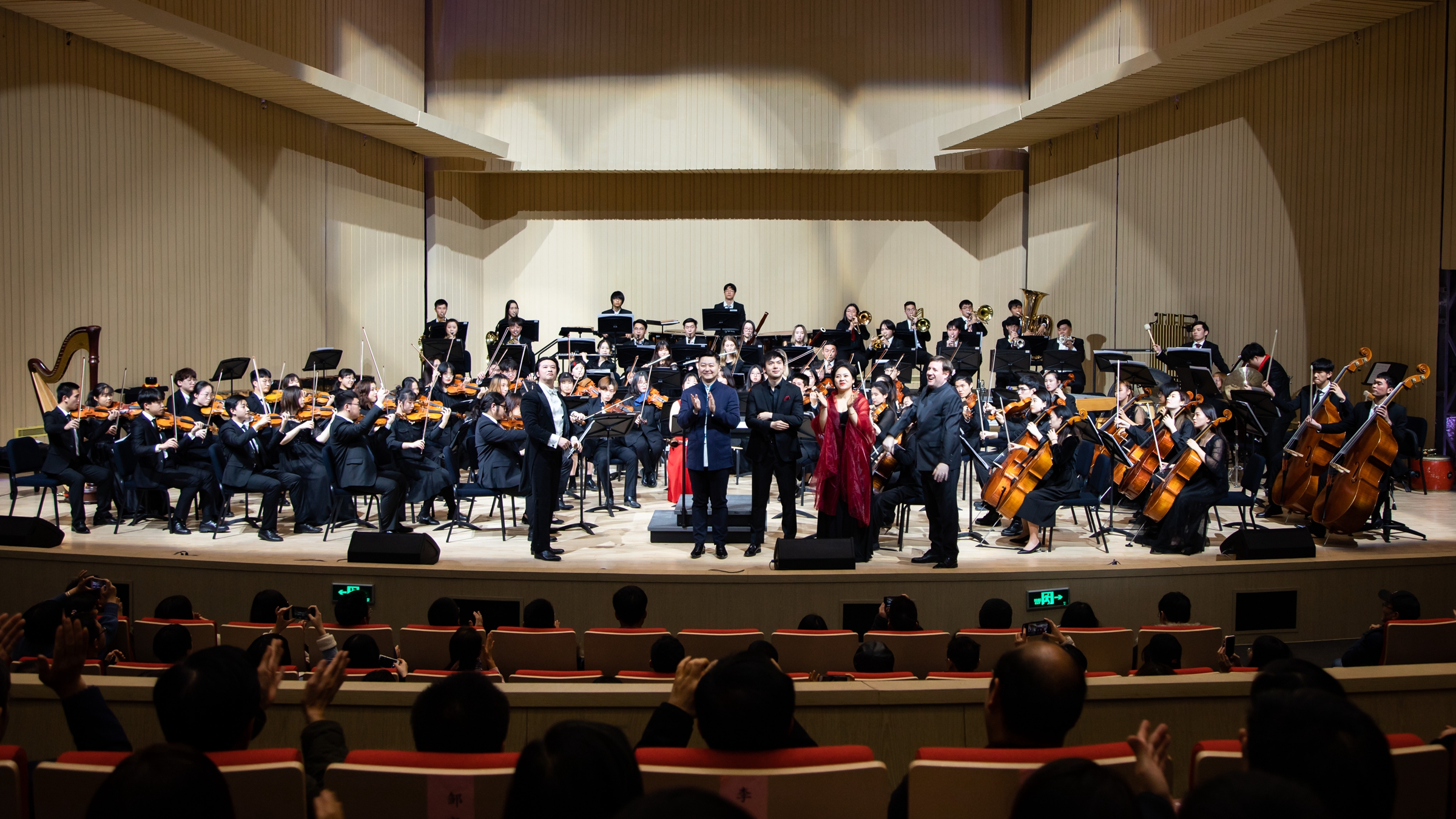 習近平總書記在文藝工作座談會上指出“中華優秀傳統文化是中華民族的精神命脈,是涵養社會主義核心價值觀的重要源泉,也是我們在世界文化激蕩中站穩腳跟的堅實根基。”2019年是中華人民共和國成立七十周年,音樂會特意編排了以中國作品為主調的曲目內容:曾唱出全世界華人對祖國的深情贊美和無限向往,讓人心潮澎湃、熱血沸騰的《我的中國心》;膾炙人口的《太陽出來喜洋洋》情緒樂觀爽朗,表現了渝東山民們熱愛勞動、熱愛山區的生活情感;音樂學院青年教師張一嘉與樂團合作的中國經典小提琴曲《苗嶺的早晨》,謳歌了祖國大地生機勃發、欣欣向榮的美好圖景;此次音樂會還特別編排了中國經典芭蕾舞劇《白毛女》和《紅色娘子軍》中的《北風吹》《扎紅頭繩》和《快樂的女戰士》等經典樂段。蘇州大學交響樂團將一如既往傳播優秀的中國經典作品,把傳播中華文化作為樂團發展的重要方向。音樂會結束時,現場觀眾意猶未盡,在臺下熱烈的歡呼和掌聲中樂團又加演了兩首作品。伴隨著經典的《拉德茨基進行曲》雄壯的旋律和觀眾有節奏的掌聲,新年音樂會的氣氛達到高潮,音樂會圓滿謝幕。