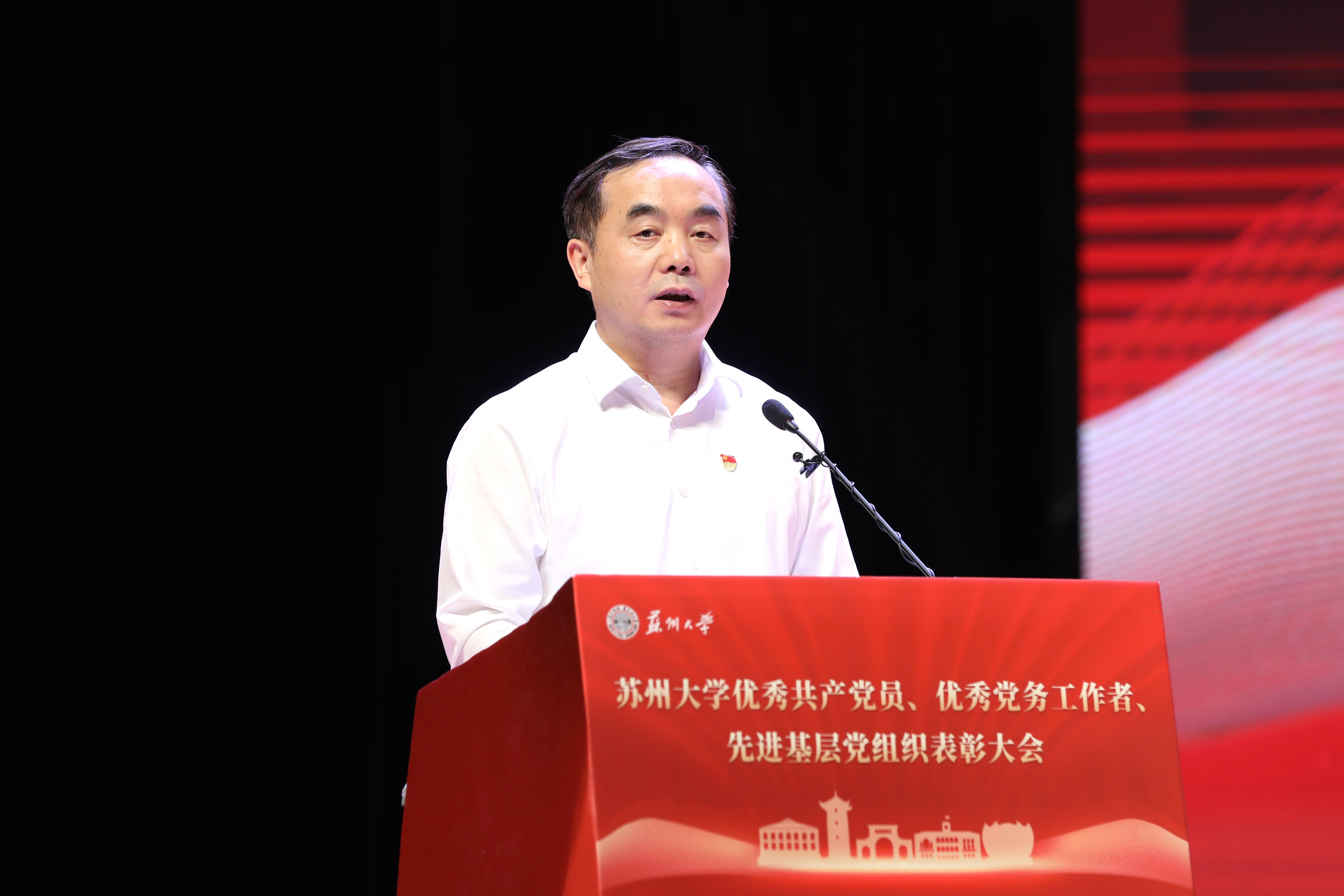 為全面貫徹落實(shí)黨的二十大精神,推進(jìn)學(xué)習(xí)貫徹習(xí)近平新時(shí)代中國特色社會(huì)主義思想主題教育走深走實(shí),激勵(lì)全校各級黨組織和廣大黨員改革創(chuàng)新、爭創(chuàng)先進(jìn),6月30日下午,我校召開蘇州大學(xué)優(yōu)秀共產(chǎn)黨員、優(yōu)秀黨務(wù)工作者、先進(jìn)基層黨組織表彰大會(huì)。在蘇校領(lǐng)導(dǎo)、校黨委常委,各黨群部門主要負(fù)責(zé)人,各黨委、黨工委書記、副書記,優(yōu)秀共產(chǎn)黨員、優(yōu)秀黨務(wù)工作者和先進(jìn)基層黨組織代表,各黨委、黨工委師生黨員代表,全體專兼職組織員等出席大會(huì),大會(huì)由校黨委副書記鄧敏主持。