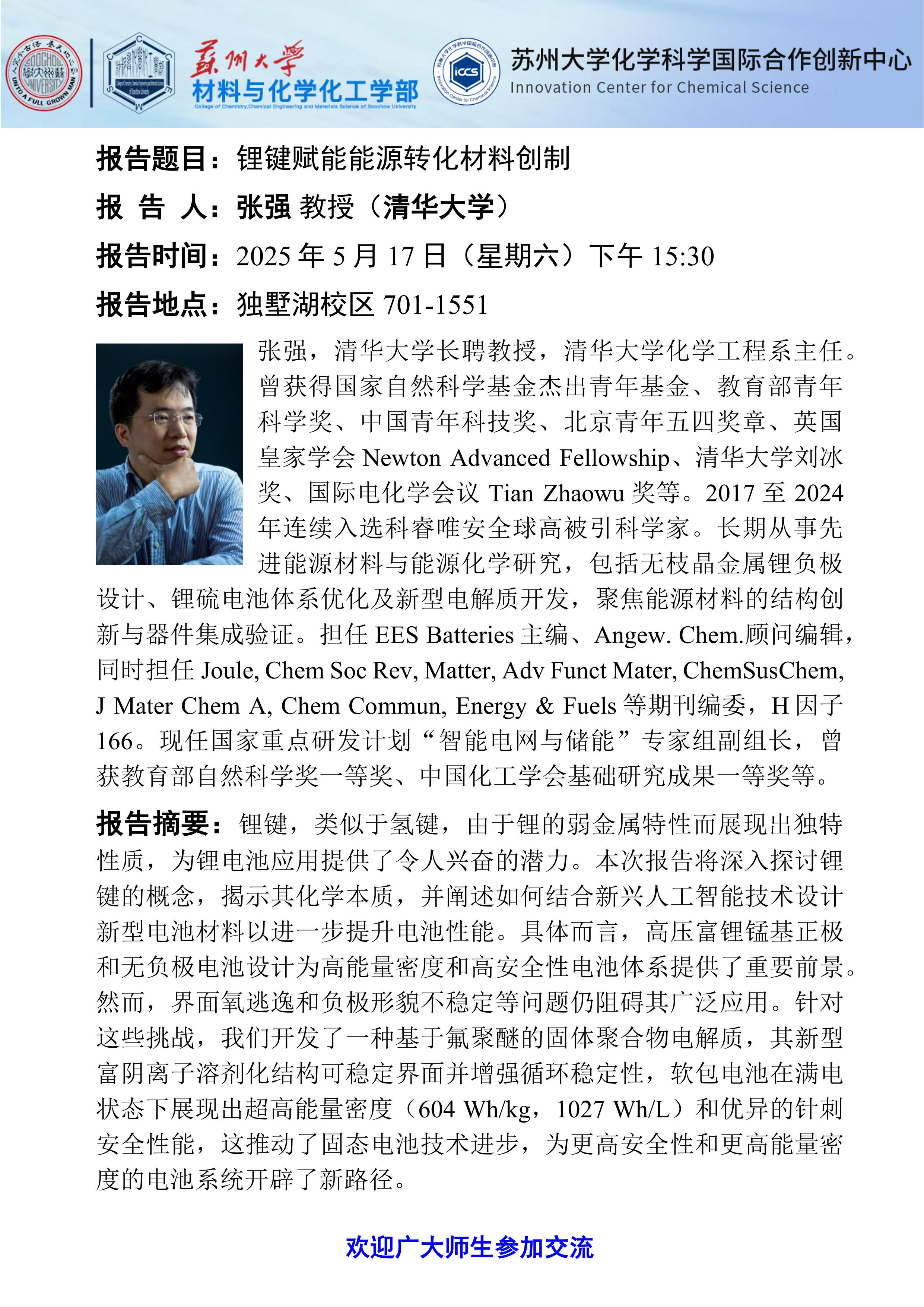 材料與化學(xué)化工學(xué)部學(xué)術(shù)報告:鋰鍵賦能能源轉(zhuǎn)化材料創(chuàng)制