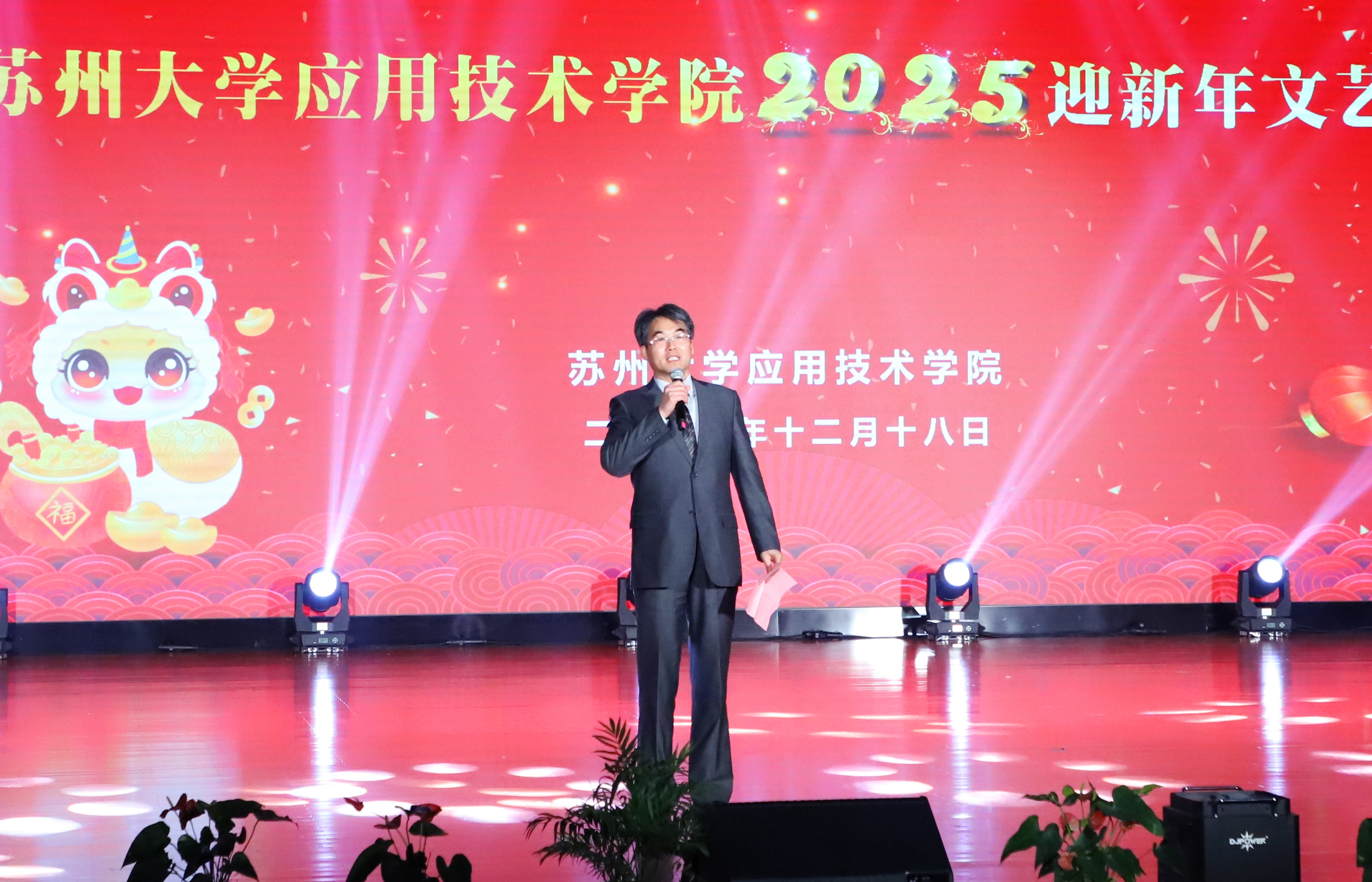 12月18日晚,“攜手奮進新征程,踔厲奮發譜新篇”——蘇州大學應用技術學院2025迎新年文藝晚會在周莊鎮文體中心舉行。周莊鎮黨委書記鄧華,昆山市融媒體中心副主任公冶玉坤,昆山濱湖新城集團有限公司副總經理周進,周莊鎮黨委委員金偉,周莊鎮副鎮長徐暉,中國移動通信集團江蘇有限公司昆山分公司副總經理楊健,中國農業銀行昆山分行副行長許斌,中國銀行昆山分行副行長金洪青、錦溪支行行長費鈺華,江蘇水鄉周莊旅游股份有限公司總經理朱素芬,昆山濱湖新城集團有限公司投資運營部部長羅敏峰、黨群工作部副部長徐敏華,學院院長傅菊芬,黨委副書記、副院長鈕秀山,副院長席擁軍,紀委書記陳敏,學院蘇州校友會會長、江蘇博大樓宇設備有限公司執行董事吳磊興以及學院相關負責人、校友代表、六百多位在校師生代表參加晚會。