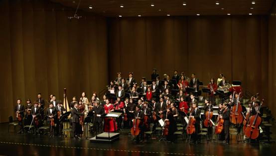 蘇州大學(xué)交響樂團(tuán)2018新年音樂會(huì)于2017年12月25日晚在蘇州保利大劇院舉行。這是蘇州大學(xué)交響樂團(tuán)第三次舉辦新年音樂會(huì)。音樂會(huì)由著名指揮家,蘇州大學(xué)音樂學(xué)院院長(zhǎng)吳和坤博士親自執(zhí)棒。音樂會(huì)在傳統(tǒng)曲目柴科夫斯基《胡桃夾子》組曲選段拉開了的序幕,音樂學(xué)院聲樂表演三位研究生同學(xué)分別演唱福雷《安魂曲》選段、貝利尼歌劇選段和中國(guó)歌曲《我愛你中國(guó)》。音樂學(xué)院青年教師宋歆予與交響樂團(tuán)合作的貝多芬《F大調(diào)浪漫曲》以及德沃夏克膾炙人口的《斯拉夫舞曲》讓觀眾朋友們流連忘返。此場(chǎng)音樂會(huì),還特意挑選了江蘇民歌《茉莉花》和《春節(jié)序曲》向觀眾致意,表達(dá)了新年的祝賀。音樂會(huì)在老約翰·施特勞斯的《拉德茨基進(jìn)行曲》中落下帷幕。蘇州市委統(tǒng)戰(zhàn)部、蘇州市文廣新局、蘇州大學(xué)、市僑聯(lián)和蘇州市歐美同學(xué)會(huì)的領(lǐng)導(dǎo)觀看了音樂會(huì)。