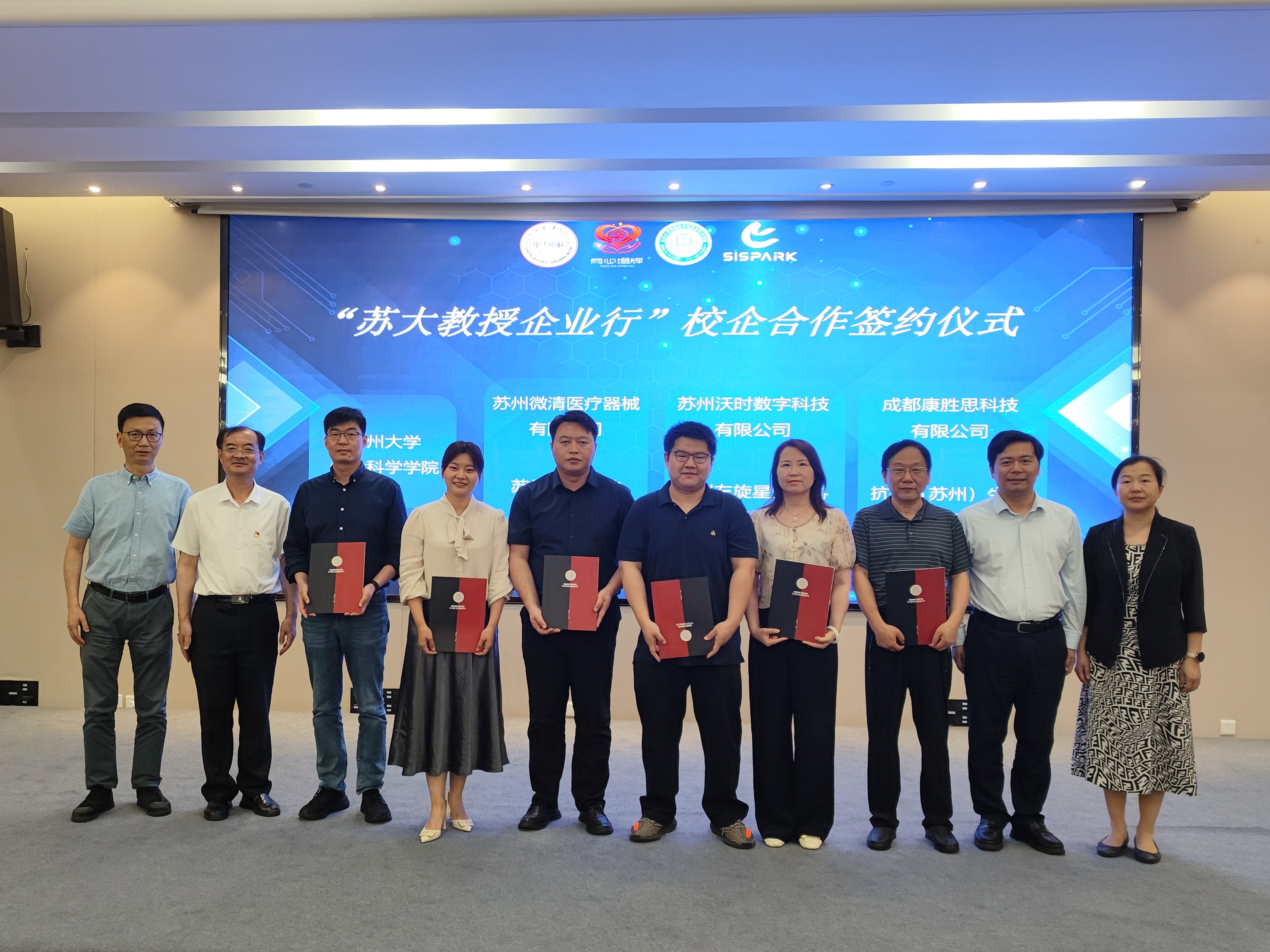 會上,我校生命科學(xué)學(xué)院與蘇州微清醫(yī)療器械有限公司、蘇州沃時數(shù)字科技有限公司、成都康勝思科技有限公司、蘇州費莎科技有限公司、蘇州左旋星生物科技有限公司、抗碼(蘇州)生物科技有限公司等6家企業(yè)簽訂了戰(zhàn)略合作協(xié)議。